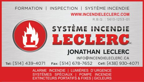Quels que soient vos projets ou besoins en terme de produits et services, vous trouverez en SYSTÈME INCENDIE LECLERC INC un partenaire de confiance reconnu pour son approche professionnelle et son efficacité. Nous sommes des experts en Incendies - Protection, .